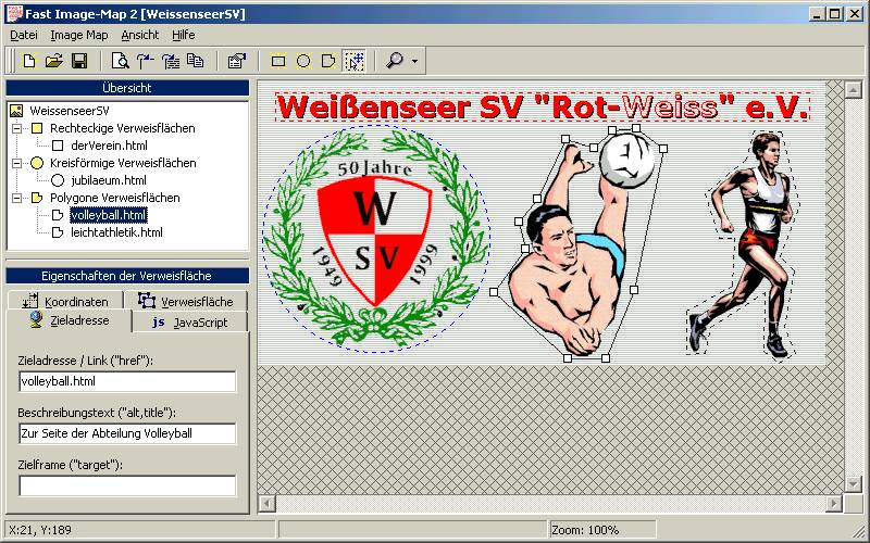 Test der Image Map in der integrierten Vorschau: