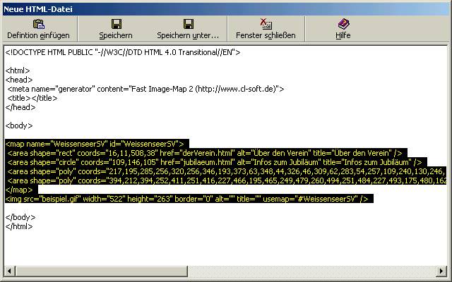 Einfügen der Image Map Definition in bestehende oder neue HTML Dateien: